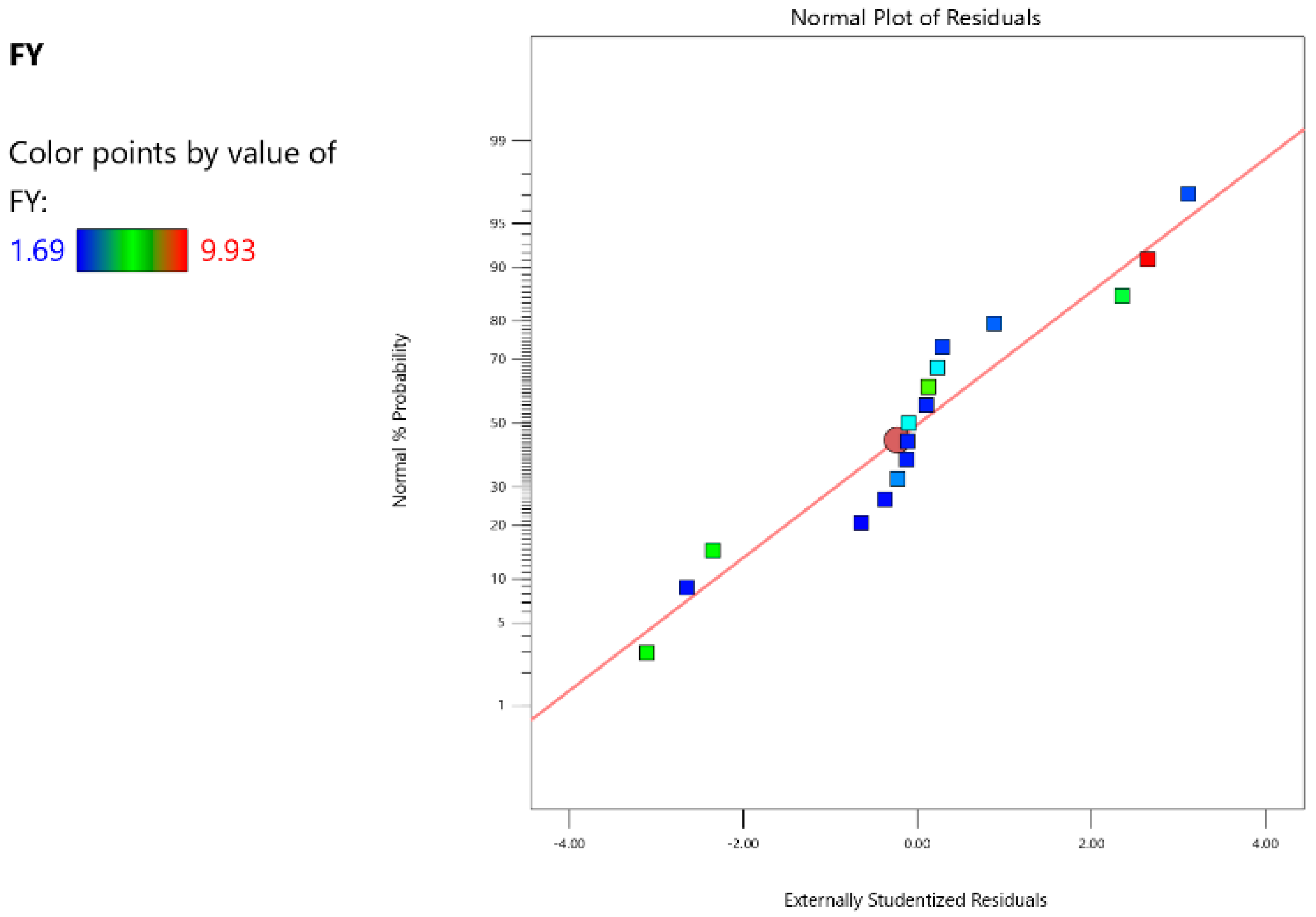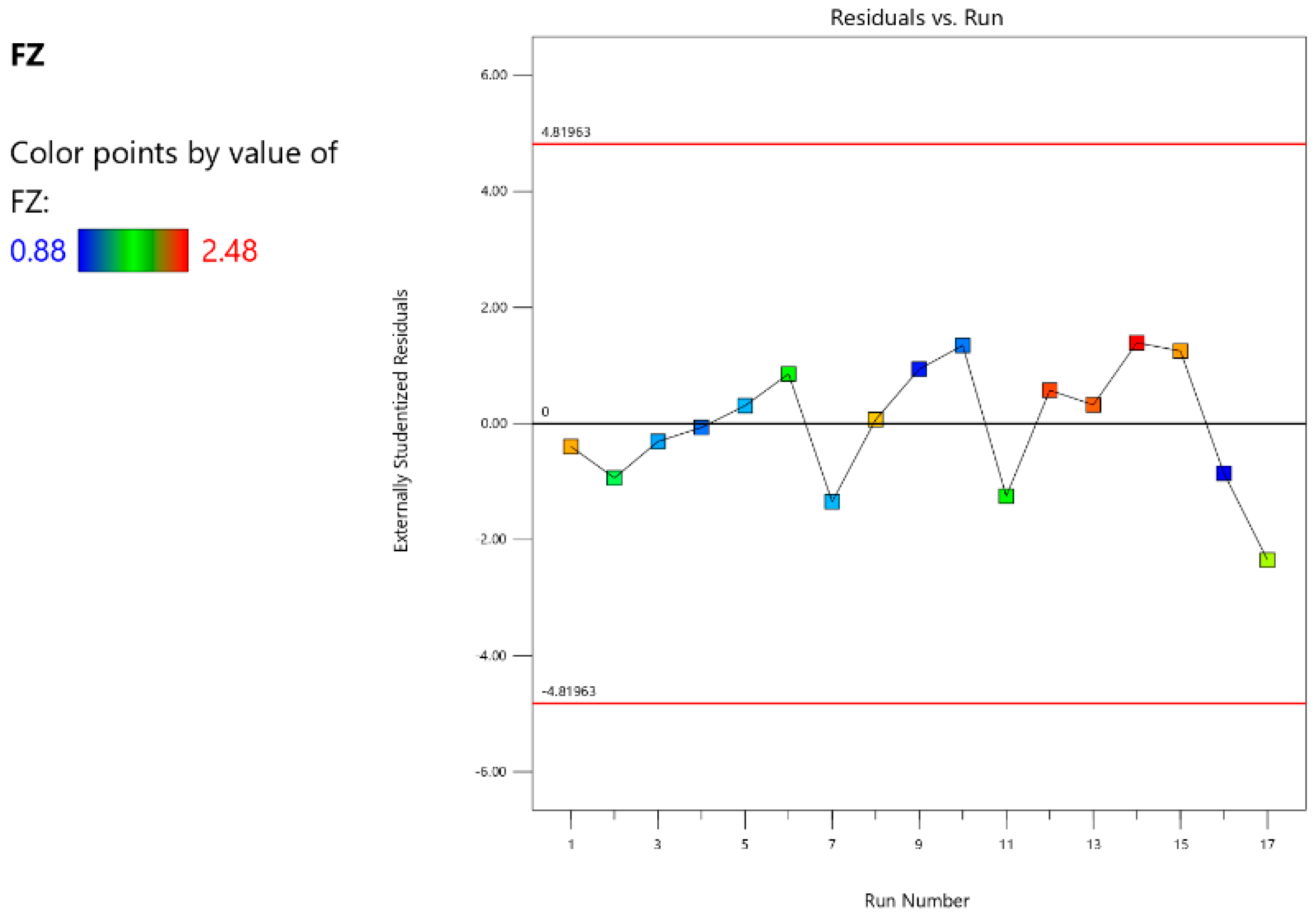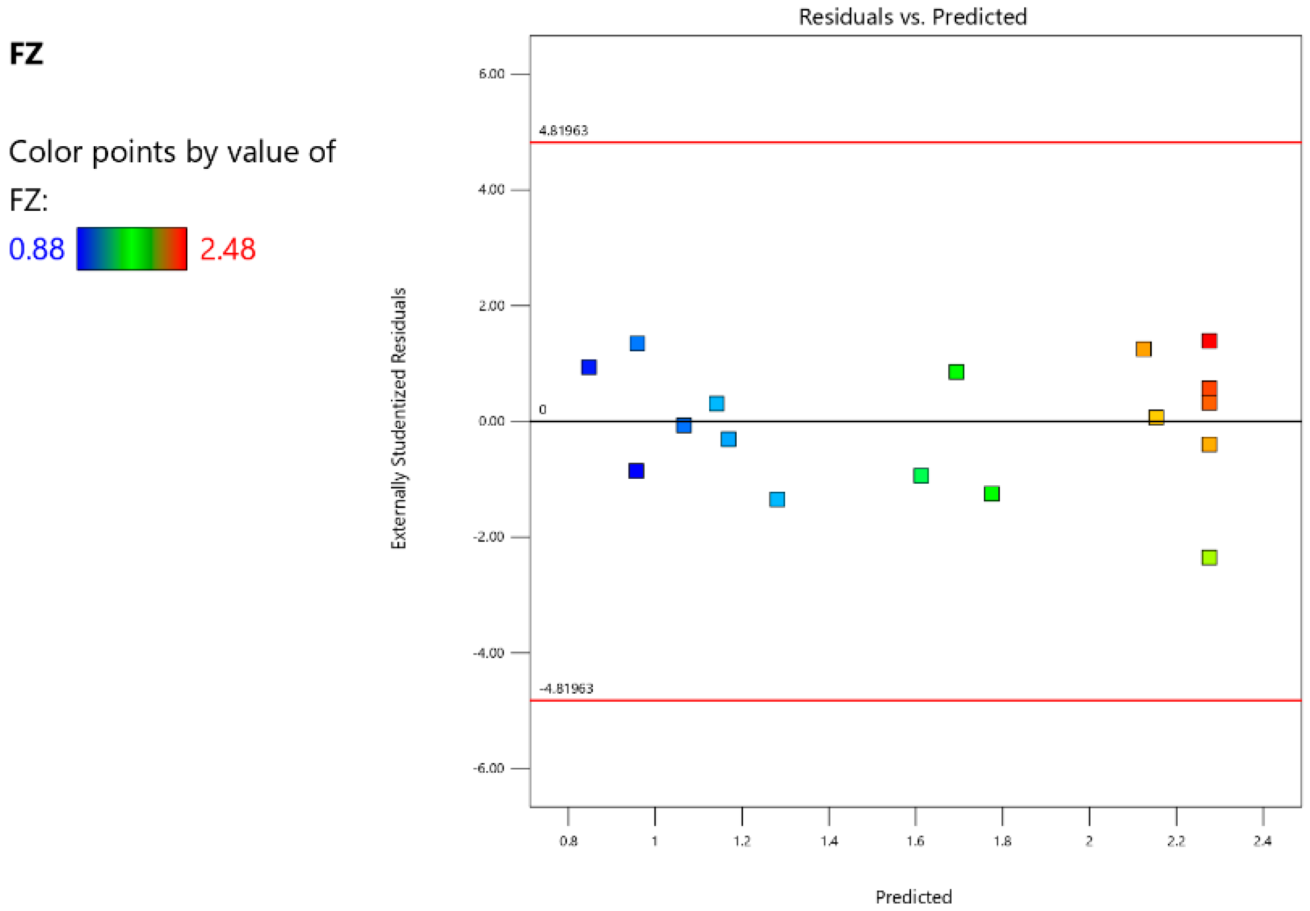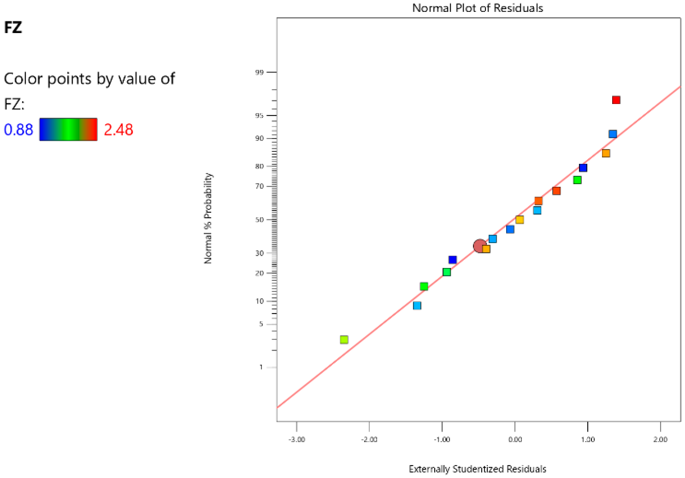 p-value of 0.0005, suggesting that the model has a significant effect on Fz. The reliability of the model was validated through regression diagnosis (see