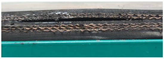 Figure 3. Surface wear of a conveyor belt—abrasion at the interface with sealing elements [49].