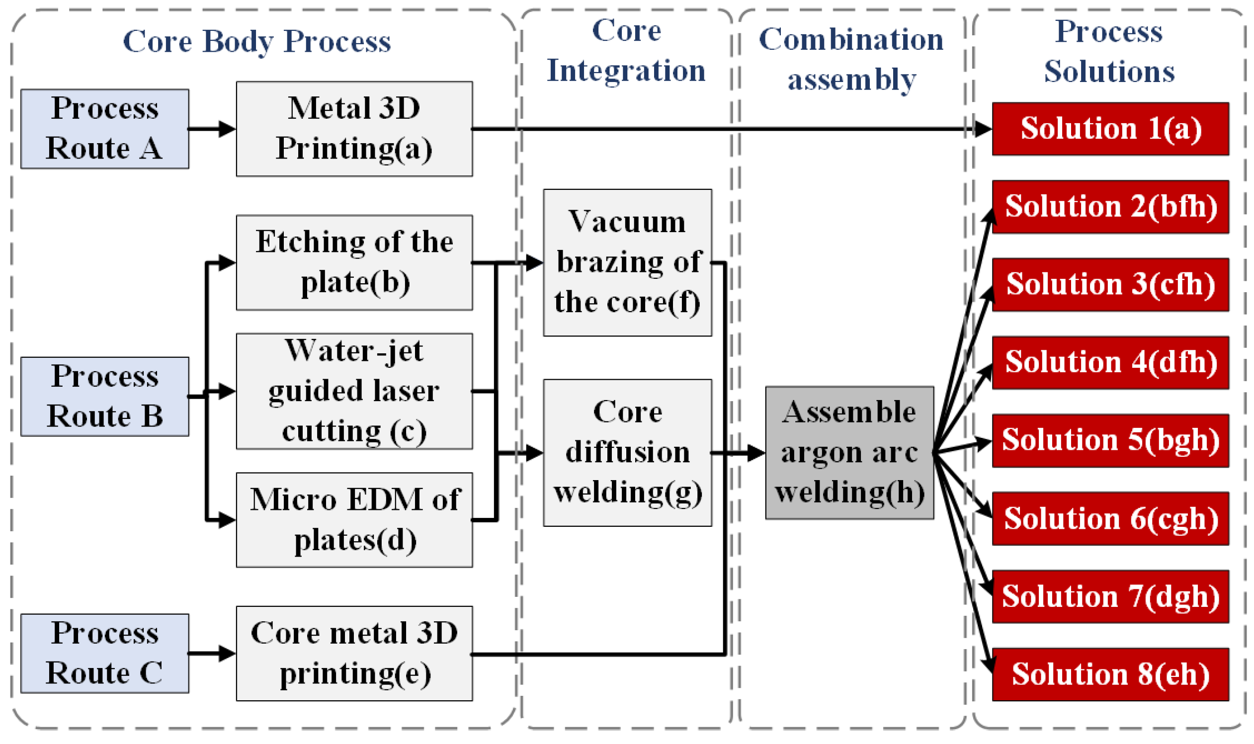 - Meng, B.; Wan, M.; Zhao, R.; Zou, Z.; Liu, H. Micromanufacturing technologies of compact heat exchangers for hypersonic precooled airbreathing propulsion: A review. Chin. J. Aeronaut. 2021, 34, 79–103. [Google Scholar] [CrossRef]