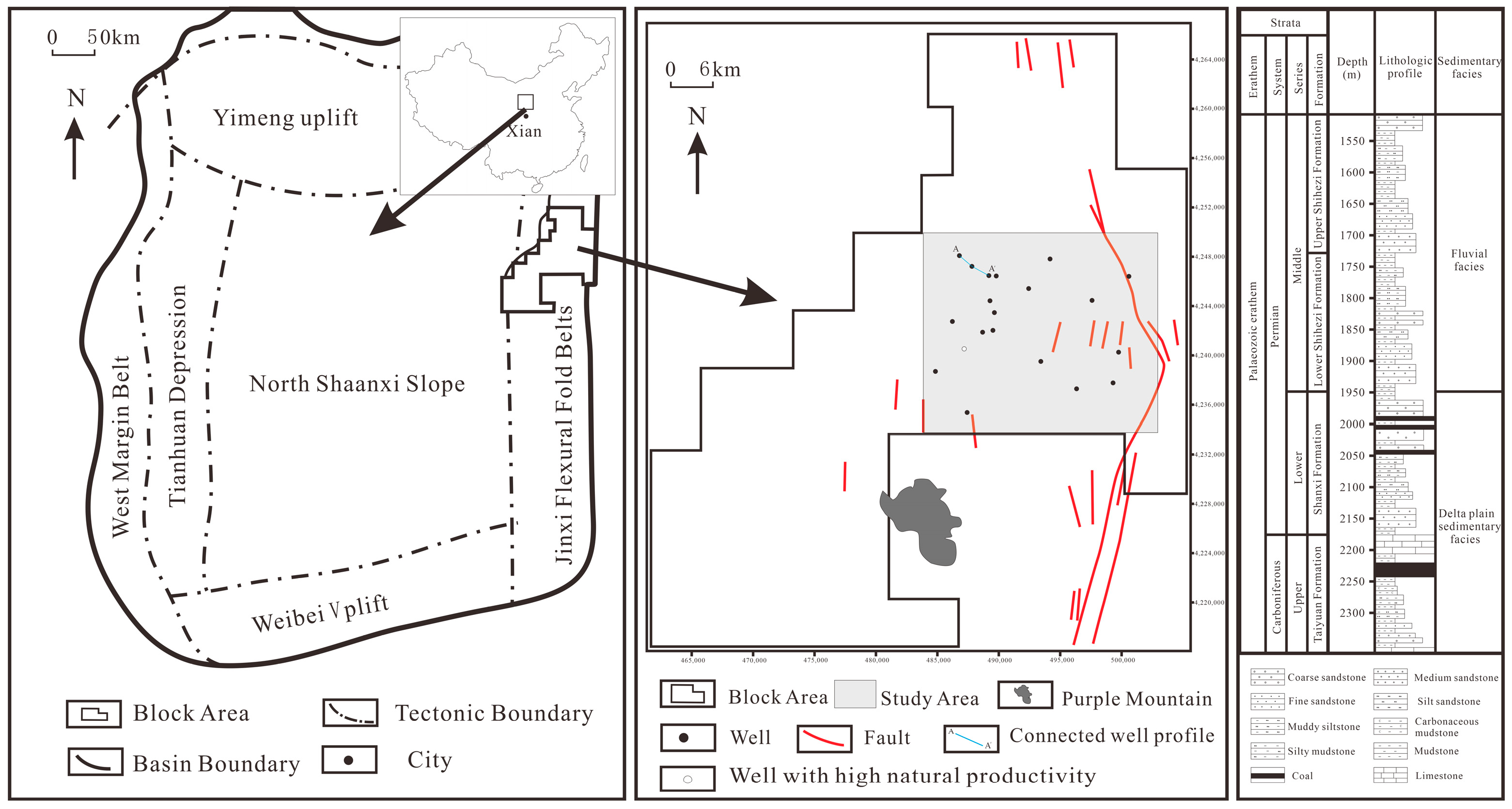 | Taiyuan Formation | 1754.65 | 1754.9 | fine sandstone | tectonic fractures | 1 | 25 | 2 | 60° | |