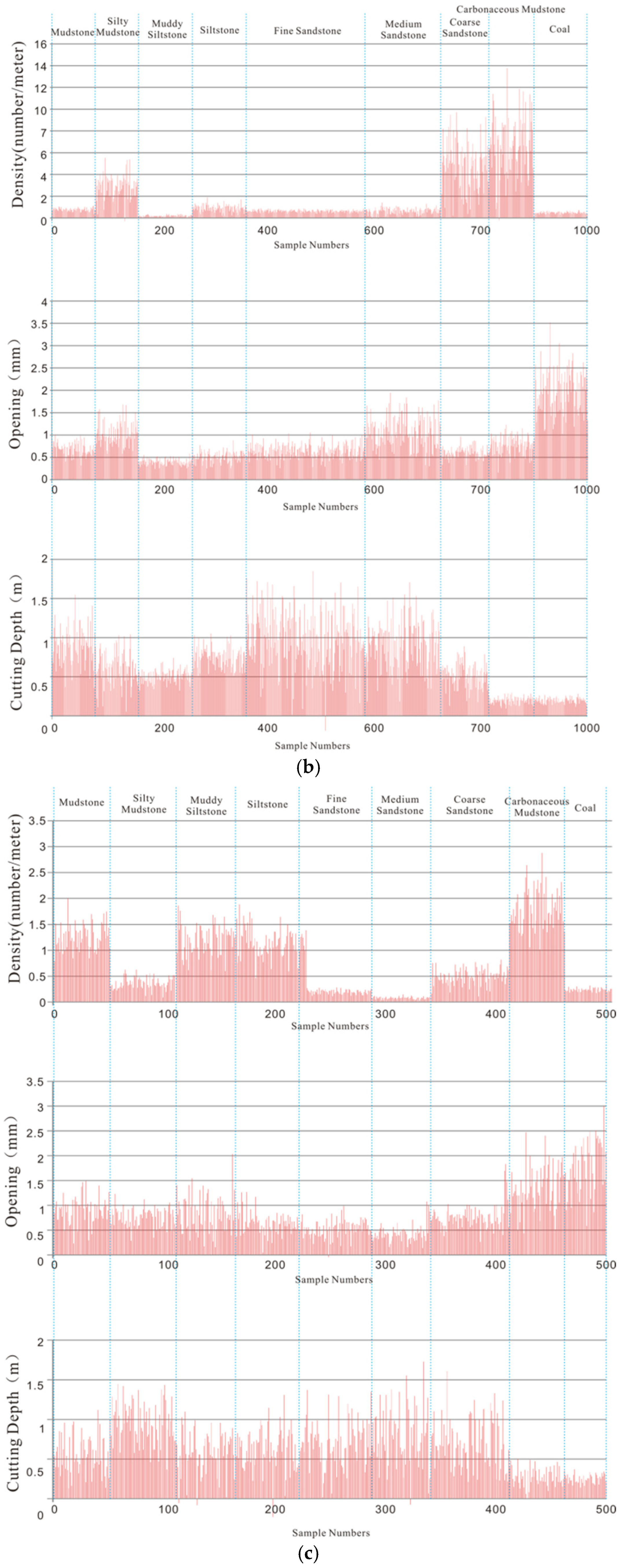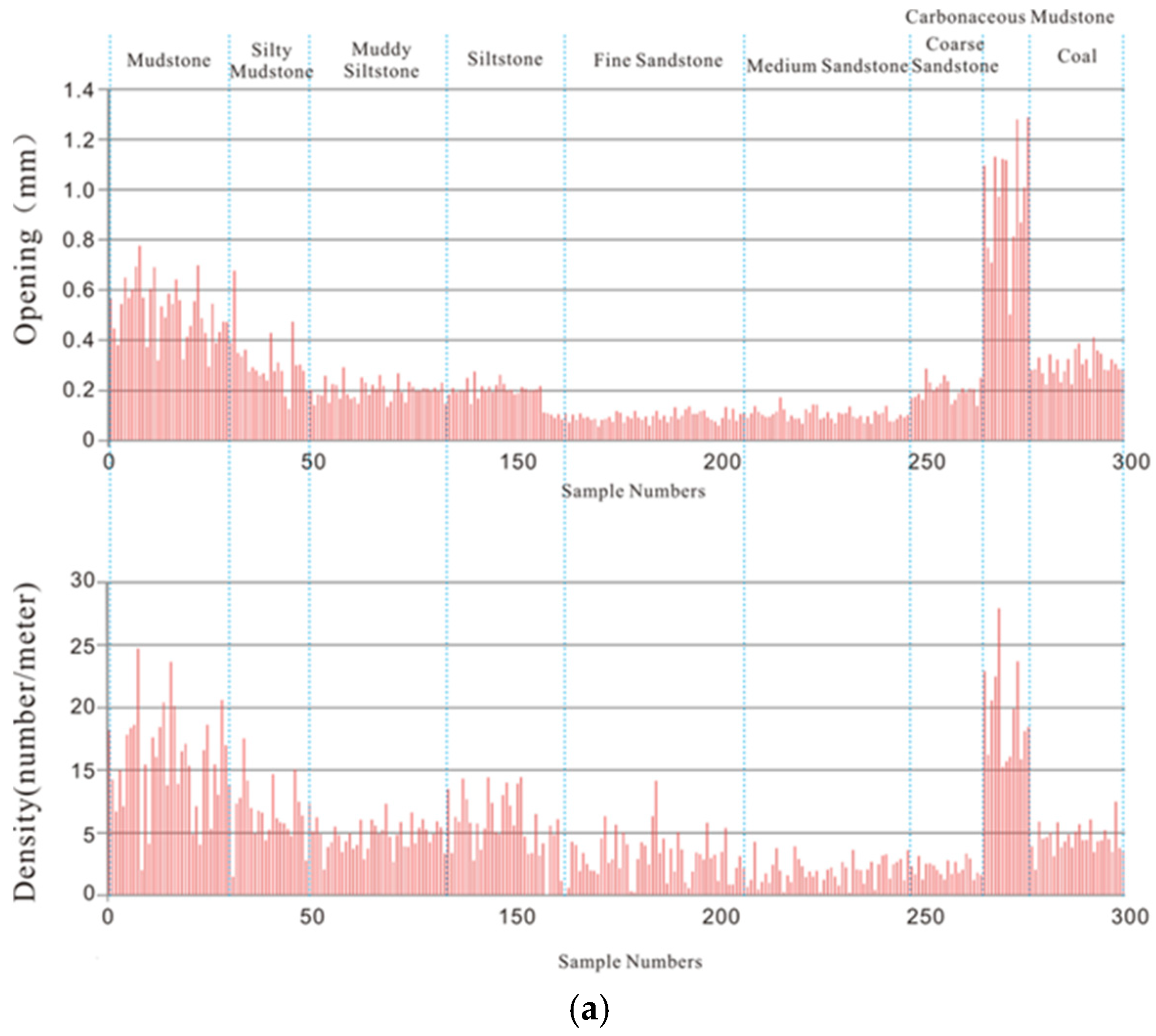 | Fractures | Lithology | Fracture Density (Number/Meter) | Cutting Depth (m) | Opening (mm) | Classification of Fracture Facies |