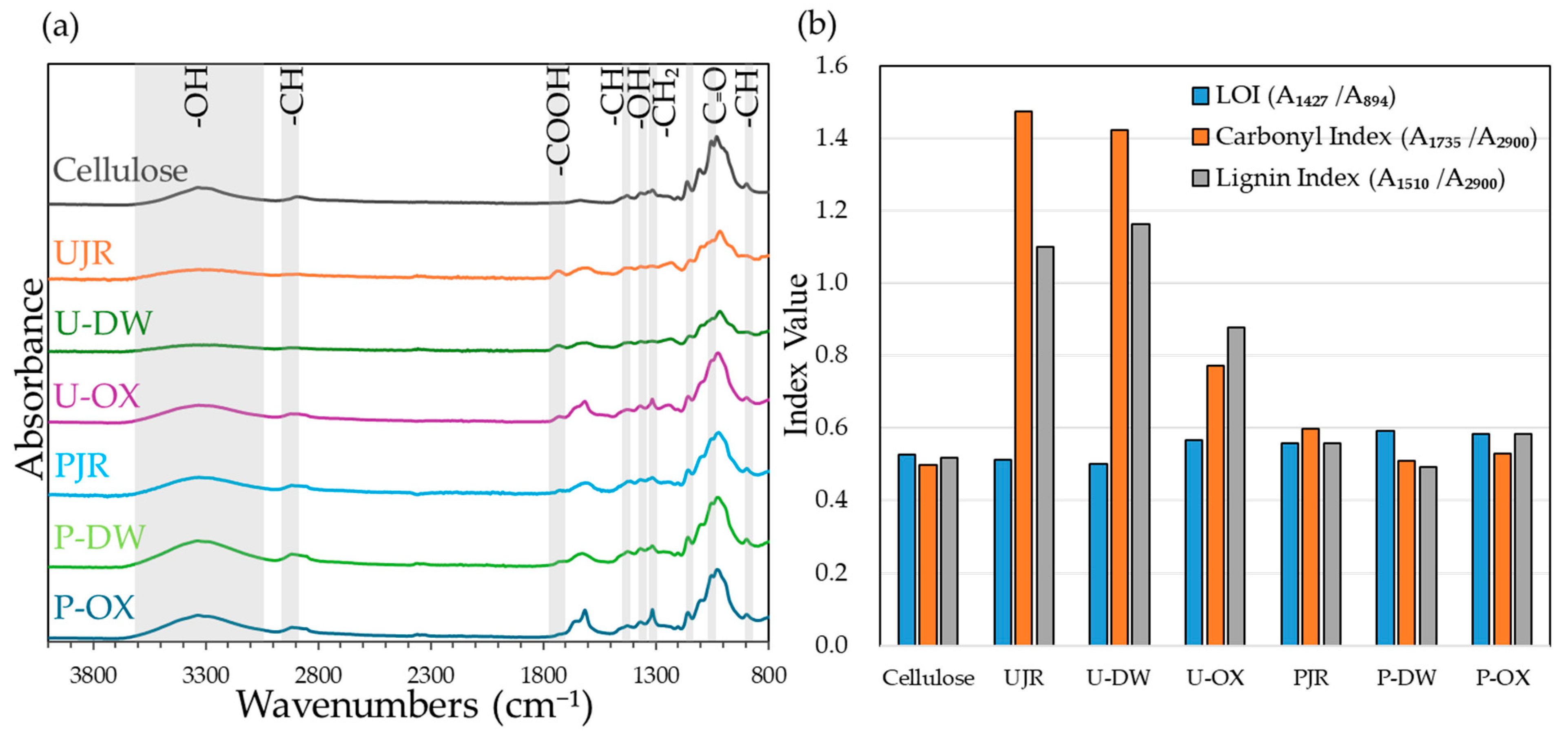 In contrast, the cellulose content of U-OX was lower than that of UJR and U-DW (