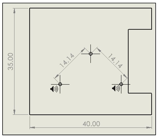 The testing scenario employs two sound sources positioned alongside a receiver within the designated floor plan, as illustrated in Figure 5. This configuration facilitates a comprehensive evaluation of the algorithm’s performance of established methods, allowing for an assessment of its accuracy and reliability in predicting sound levels within a controlled environment.