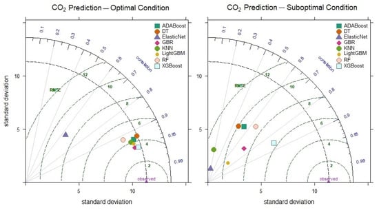 Test performances of CO2 prediction under optimal and suboptimal conditions.