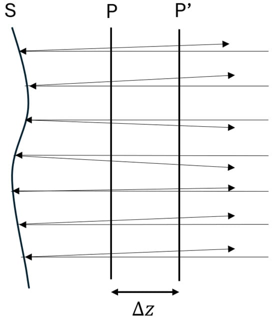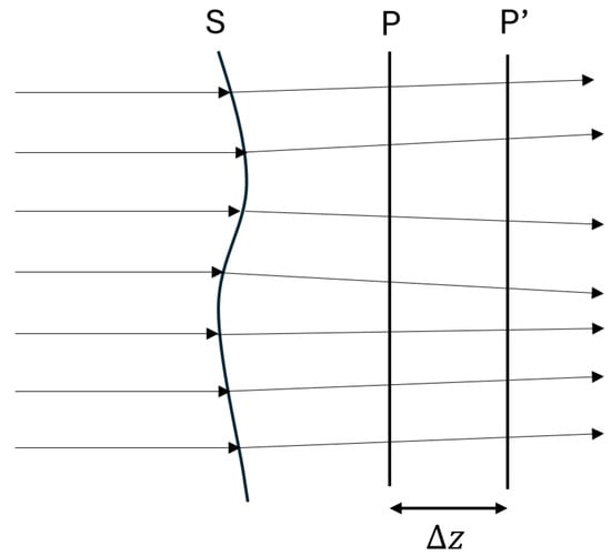 Refractive method. P and P’ are the planes in the object plane where the intensity can be measured to obtain the wavefront, and S is the sample surface.