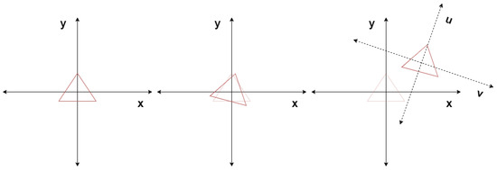 Figure 8 shows the required transformations. A simple change of basis is applied by using Equation (9) to convert the measurements from the local coordinate system (x, y) to a global coordinate system (u, v).