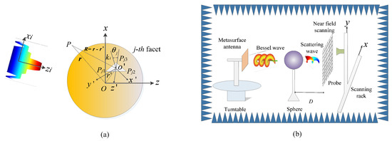 In [7], Liu et al. proposed the interaction between vortex EM waves and electrically large sphere/cones by using the PO algorithm. Similarly, Sun et al. investigated the scattering of Laguerre–Gaussian (LG) beams on electrically large-scaled targets by means of a parallel-processing PO [16]. However, the vector properties of the Bessel scattered field have not yet been revealed due to the application of the traditional Stratton–Chu integral. To address this problem, Li et al. applied a combination of ASE and PO to analyze the scattering near-field characteristic of the targets irradiated by the Bessel EM wave [17]. Meanwhile, Li used the same method to calculate the far-field RCS [18] of Bessel vortex EM waves upon the coated targets. Nevertheless, to the best of our knowledge, few experimental measurements of vortex EM scattering have been reported. Experiments on the reflection and refraction of vortex EM waves were carried out in [5]. Liu et al. presented a target detection method [19] of vortex EM waves and verified the corresponding theory through experiments. As radar identification usually adopts the forward scattering signals provided by the moving targets crossing the baseline between the transmitter and receiver, forward scattering has vital significance in increasing the target RCS, and is quite advantageous for use in counter stealth detection. However, the bistatic scattering measurements of vortex EM waves are rarely reported.