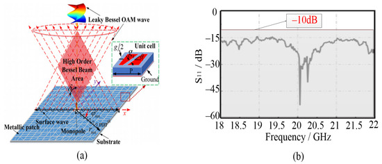 Figure 3. Schematic diagram (a) and reflection coefficient of the Bessel antenna (b).