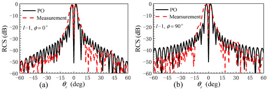 Figure 15. RCS of different targets by means of near-far field conversion and PO calculation. (a) Measurement and (b) theory.