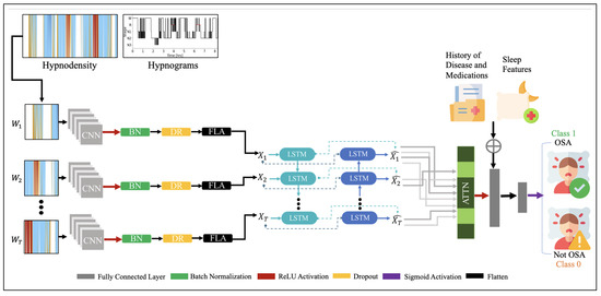 For this purpose, we construct image representations of sleep stages that can be compared to the graphs most sleep tracking applications and devices can generate [8] to classify OSA. We implement the state-of-the-art Convolutional Bidirectional Long-Short-Term Memory (CNN-BiLSTM) model to process both the temporal sequence component (i.e., transitions) and the spatial content of the pixel colors (i.e., duration of each stage) [9]. This study expands beyond individual patient health to address broader aspects of population health management. It employs a noninvasive and cost-effective approach, using comprehensive patient data from electronic health records. These records provide detailed information on medical history, including prevalent comorbidities such as cardiovascular disorders, diabetes, obesity, and hypertension, as well as demographic variables such as age, race, and gender, which have been linked to OSA, insomnia, and depression.