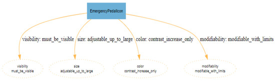 Figure 4 shows the properties specific to the Driver Profile and Figure 5 illustrates the properties specific to the EmergencyPedalIcon, detailing how each relates within the ontology’s structure.