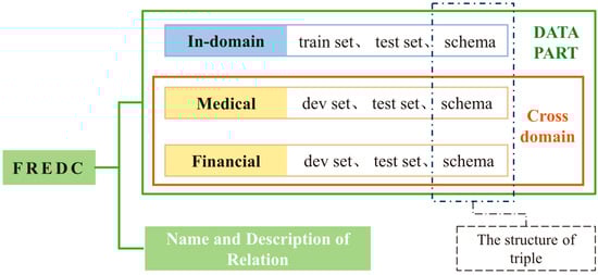 The structure of FREDC, as depicted in Figure 2, encompasses data from three distinct fields, complete with their respective training, validation, and test subsets, and the associated triplet configurations. Furthermore, the dataset also encompasses comprehensive explanations of all relation types.