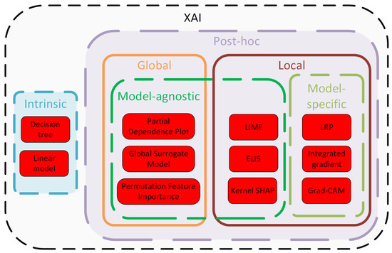 XAI methods are being developed at a rapid pace. They can be divided into several categories depending on the purpose and application. The categorization of some of the well-known methods is visualized in Figure 1. The main distinctions are as follows: