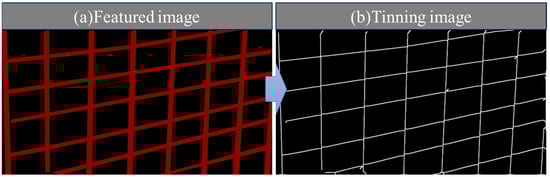 Due to the complex and prominent geometric features of rebar mesh images, the thinning process imposes higher demands. By applying thinning to the semantically segmented rebar mesh images, the geometric properties of the mesh can be preserved while significantly reducing the computational complexity involved in the subsequent geometric feature extraction and analysis. This method is highly valuable in practical engineering applications, particularly when dealing with large image datasets, as it significantly improves computational efficiency and reduces resource consumption.
