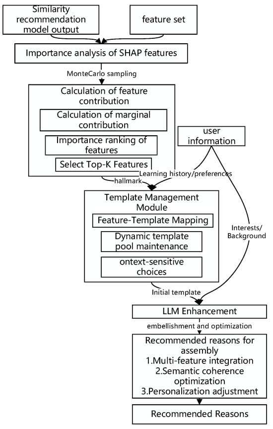 In a personalized course recommendation system, providing interpretable recommendation results not only increases user trust but also helps learners better understand the reasons behind the recommendations. This section discusses two core interpretability methods in detail: SHAP-based feature importance analysis and a recommendation explanation generation algorithm. As shown in Figure 4, the interpretable recommendation framework combines SHAP-based feature analysis with semantic enhancement to provide transparent and meaningful explanations.