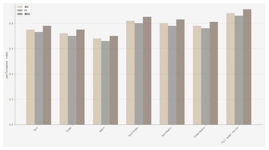 Figure 6 shows a comparison of modality fusion effects. The results indicate that multimodal fusion has significant advantages in knowledge graph construction. The accuracy of the single-text modality is 0.75, which provides basic semantic representation but cannot capture the rich information contained in video and audio. The text and video combination performs well, achieving an accuracy of 0.82, as video data enhances semantic expression through visual demonstration and dynamic content, offering additional support for understanding complex concepts. In contrast, the text and audio combination achieves an accuracy of 0.75, as audio only supplements information in terms of emotion and tone, making it slightly less effective than the text and video combination. Full multimodal fusion (text, video, and audio) yields the best performance, with an accuracy of 0.88, indicating the strong complementarity of multimodal information. By integrating all modalities, the system can more comprehensively capture complex semantics and relationships.