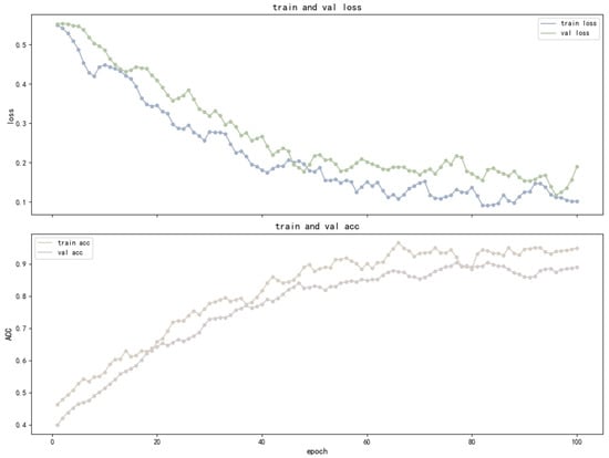 The changes in the loss function and validation accuracy during model training are shown in Figure 11.