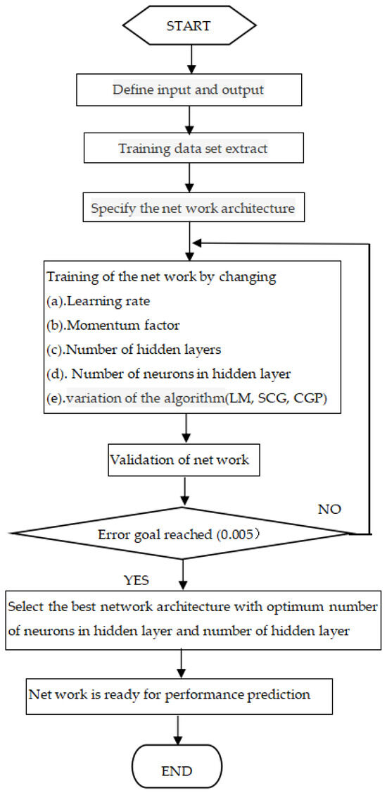 Figure 9 is the deep learning and training procedure flow of the neural network. The fuzzy neural network is used to train the error of the collected operation data by variation of the LM (Levenberg–Marguardt), SCG (Scaled Conjugate Gradient), and CGP (PolaeRibiere Conjugate Gradient) algorithms, and then the optimal PID controller under the corresponding operating conditions is obtained.