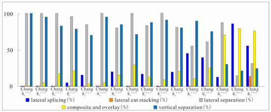 | vertical superposition | Underwater distributary channel–underwater distributary channel superimposed type | ![]() | ![]() |