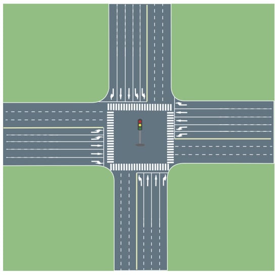 - Lin, H.; Han, Y.; Cai, W.; Jin, B. Traffic signal optimization based on fuzzy control and differential evolution algorithm. IEEE Trans. Intell. Transp. Syst. 2022, 24, 8555–8566. [Google Scholar] [CrossRef]