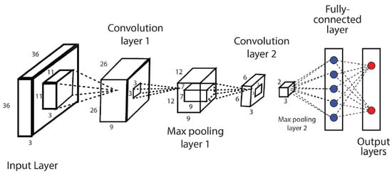 The output value at the location (i, j) in the downsampled feature map is produced by the max. pooling operation by choosing the maximum value from this group of four input values, as shown in Equation (6). The most noticeable features are preserved, while the feature map’s spatial dimensions are reduced.