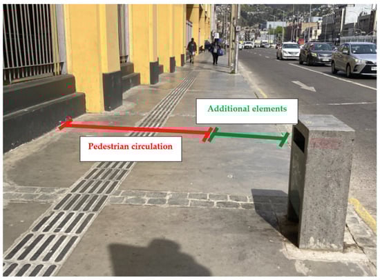 To have a more comprehensive understanding, some authors [30] distinguish between walkability and walking accessibility, emphasizing that various components should be considered. These include land use factors (e.g., income and population), transport aspects (e.g., access to bus stops), temporal factors (e.g., climate), and individual characteristics (e.g., capabilities). Taking into consideration these differences, [31] analyzed the accessibility network for pedestrians in different cities. The authors incorporated the relationship between accessibility and connectivity. Recent studies [32] analyzed accessibility in Latin American cities. The authors utilized GIS and Google Street View to perform a virtual street audit, examining urban features such as curb ramps, pavement continuity, sidewalk width, well-maintained sidewalks, active uses, and green spaces. In this context, sidewalks have become a crucial element in urban mobility. They are not only used to connect two points of origin and destination but also serve a social function within the city, thereby enhancing interaction and fostering stronger community engagement [33].