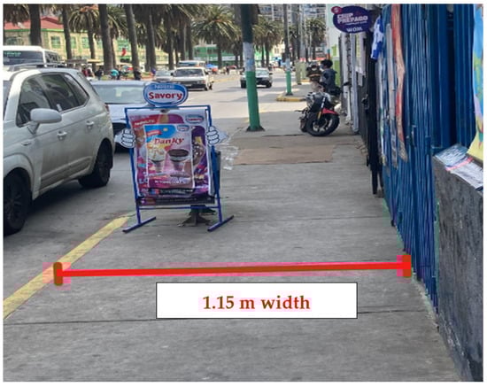 - Level 1: A value of 1 is assigned when the pedestrian sidewalk width is between 90 cm and 150 cm.