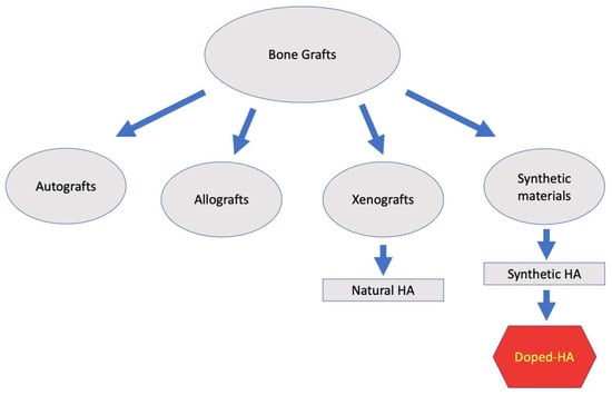 The schematic placement of doped hydroxyapatite within the classification of biomaterials is presented in Figure 1.