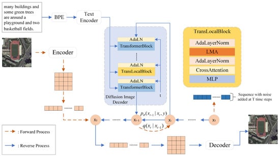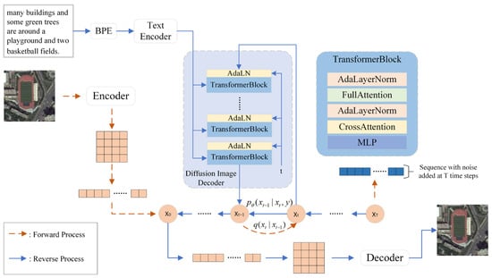 25]. They proposed a Hopfield network to maintain and update states during image generation, enhancing consistency between the generated images and textual descriptions, thereby resulting in remote sensing images with abundant details. The VQ-Diffusion model integrates the principles of diffusion and the Transformer architecture, demonstrating outstanding performance in general image generation. Therefore, this study uses VQ-Diffusion as the benchmark model for remote sensing image generation. To address issues such as unclear details, unreasonable spatial structures, and regional distortions in generated images, the model’s structure has been improved, significantly enhancing the quality of the generated remote sensing images.