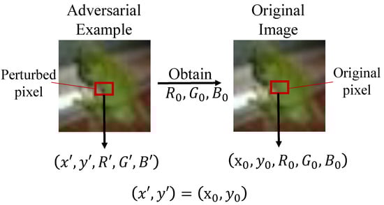 The image sizes of some datasets, e.g., ImageNet, are large. This can also be extended to multi-pixel attacks, where the number of perturbed pixels is larger than 1. This does not imply that altering just one pixel cannot execute an attack. If the computation is sufficient, i.e., the epoch number is large, even perturbing a single pixel can lead to a successful attack. In the case of n-pixel attack, RAE is fast, i.e., the epoch number is small, and each solution can be represented as a vector (, , , , , , , , , , …, , , , , ). Algorithm 1 presents the workflow for generating adversarial perturbation using differential evolution.
