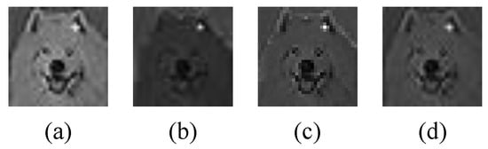 A high-pass filter, a Laplacian operator, is applied on each channel to generate six response matrices: and . In Figure 6, for visualization, the matrices have been normalized. The actual differences between the perturbed pixel and its adjacent pixels are larger than the visualization results.
