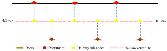 26], they used a method for extracting sub-nodes along the hallway. In their method, one key step is determining the hallway centerline, followed by projecting the positions of doors onto the centerline for sub-node extraction, but they did not provide details on how to calculate the centerline of the hallway.