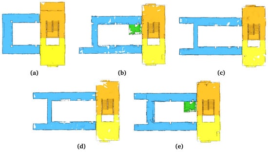 In this study, to ensure that the semantic point cloud data input to the algorithm has good quality, we conducted data preprocessing floor-wise and manually segmented the data to obtain the required semantic point clouds. All data segmentation and semantic labeling are conducted in CloudCompare software, version 2.13 [