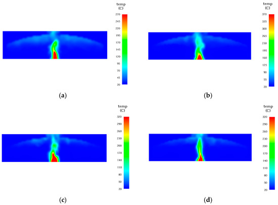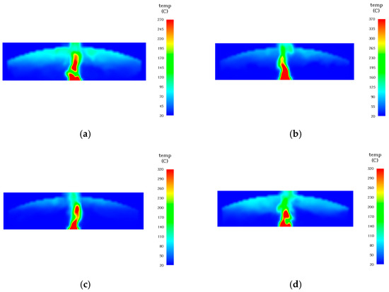 1200 s temperature distribution: (a) CASE1; (b) CASE2; (c) CASE3; (d) CASE4.