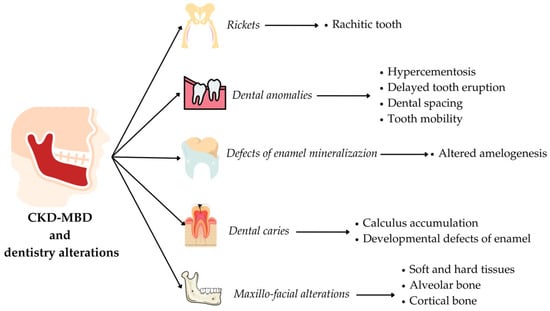CKD-MBDs and dentistry alterations in CKD pediatric patients. Abbreviation: CKD-MBD, chronic kidney disease–mineral bone disorders.