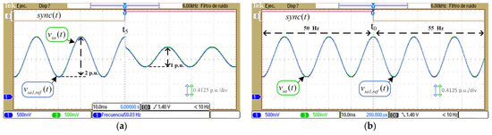 The evaluation and validation of the synchronization algorithms are performed by comparing and analyzing the emulated grid voltages, the reference signals, and the signals estimated in the digital controller. A digital oscilloscope is required to display the signals and compute some numeric indicators. Moreover, the execution time (tex) of the algorithms is evaluated through a digital output on the digital controller. The emulator generates a synchronization signal to be used as a trigger for the correct visualization of the signals in the oscilloscope.