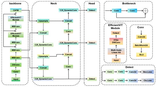 In the experiment, we tested eight different model configurations by sequentially adding or removing three major improvements: EfficientViT, CAFM, and DynamicConv. The comparison between Model 1 (no improvements) and Model 8 (all improvements) reveals the contribution of each modification to the model’s performance.