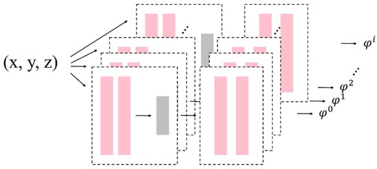 Complex stratigraphic structures, including successive consolidated and unconformable layers, are often included in real geological data, with each layer having its own implicit potential field . To model potential fields, stacked autoencoders are used, where the corresponding potential field values are generated by each input coordinate point (x, y, z). The network architecture is shown in Figure 6.