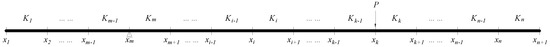 It is assumed that a concentrated load is applied at the location and a vertical constraint is set at the location . Then, the characteristic mechanical vectors at the common endpoint of the main beam are equal except for the two positions and . According to the principle that the mechanical characteristic quantities of the adjacent beam segments of the joint are equal, the following equation is obtained:
