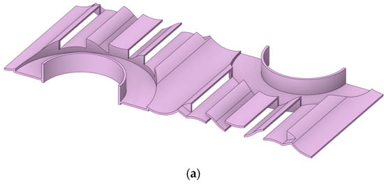 The 3D model of the wavy-slit fin employed in this numerical analysis is illustrated in Figure 2a. The 3D model was created using Creo 6.0.6.0, and the geometric parameters of the fins are provided in Table 1.