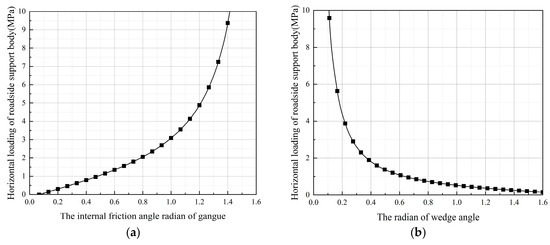 - As the internal friction angle of the gangue increases, the efficiency of the vertical stress transitions into compressive stress after the gangue compaction improves, and the lateral pressure on the support structure increases gradually.
