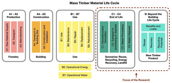 Life Cycle Stages of Mass Timber Material (EN 15978) [9].