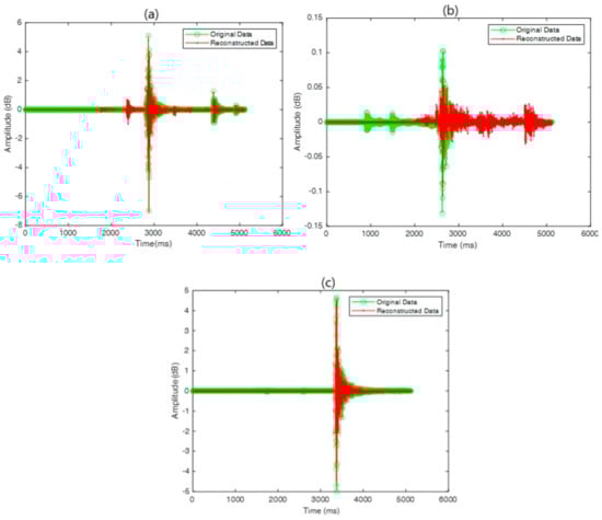 Original and reconstructed signal based on deep autoencoder for (a) JLS 1; (b) JLS 2; and (c) JLS3.