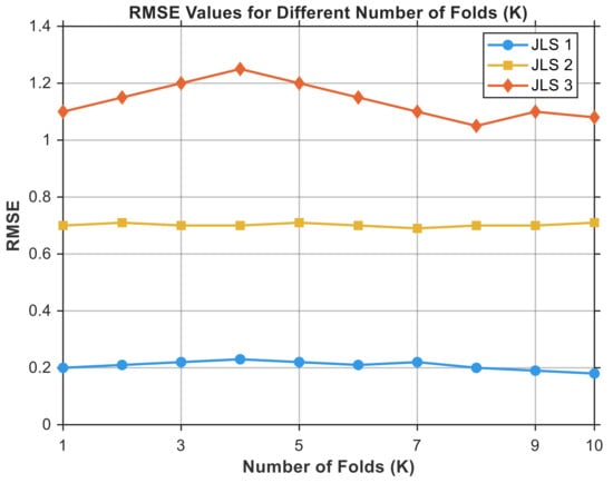 Effect of cross-validation folds (K) on RMSE values for different specimen types.