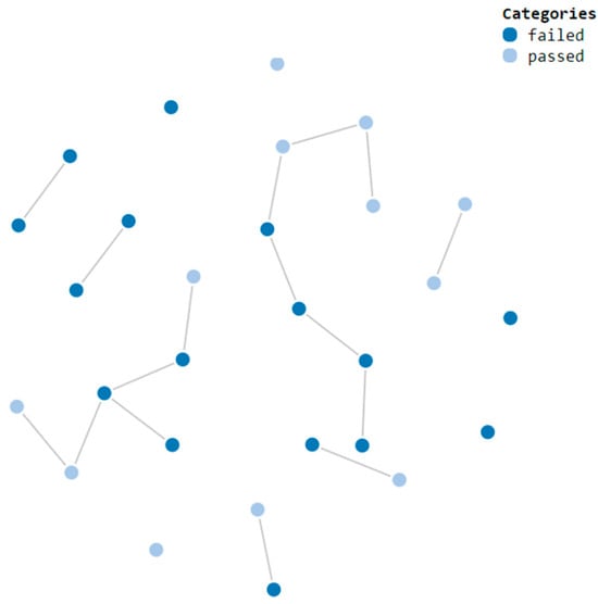 - Finally, besides the pure analytical analysis of the results, we decided to perform a categorical classification of the participants’ behavior with a double purpose. We wanted to examine whether specific patters of AOIs visited to solve the task supposed higher success rates in an inconsistent way with expectations for each item. First, this kind of analysis allows us to identify the flexibility of a task, providing a direct insight into whether the task is somehow guided, with most of the participants following a single route of resolution, or whether it is a highly free task, with not obvious pattern to resolve it. Secondly, it is possible to link those possible patterns with the obtained results to verify if any of them is more effective than others in solving the problem. So, we used a clustering classification to identify the different behavioral patterns during the experiment, using the visits of each participant to each AOI as classification features. We employed the OPTICS algorithm [94] to determine appropriate clustering regarding the participants’ behavior. This algorithm offers two significant advantages over other traditional algorithms such as k means. First, it is compatible with Boolean friendly distances, such as Hamming distance. Considering that all the features used during classification are of a Boolean nature, this is a key factor to select this approach. Second, unlike k means, this algorithm detects the optimum cluster amount based on the data distribution itself. Using this approach allows us to avoid predefining the number of clusters to discover during the process. In order to check if any of the identified pattern behaviors is more efficient in solving the task, we assigned each of the participants to the corresponding cluster, and then we performed a Kruskal–Wallis test to check for significant differences between the mean values of both the result (the correct answer for the specific task) and the overall performance (the global score considering a task related to the same competence of task in question). Additionally, we investigated the sensitivity of each item to the visitation of associated AOIs, aiming to determine if some items were more predictable than others based solely on AOI visits.