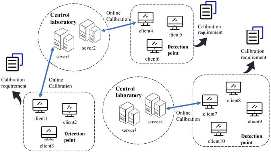 In the remote calibration process, the central laboratories and detection points are key components, with calibration tasks scheduled between them using remote technology. We model this process as a distributed remote calibration system, which facilitates task allocation between the server end and the client end.