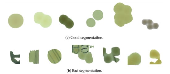 Examples of good and bad segmentations of colonies from the AGAR dataset [4] with SAM [15].