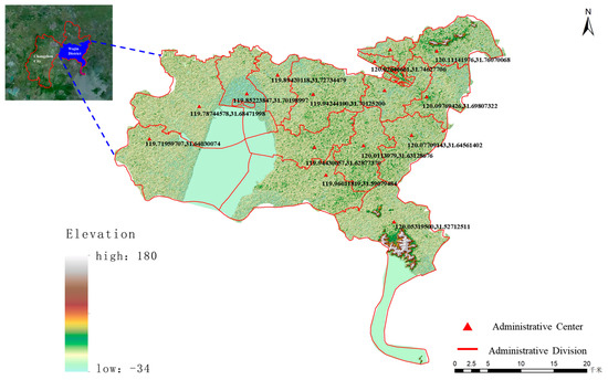 Wujin District, located in the southern and eastern part of Changzhou City in Jiangsu Province, has a subtropical monsoon climate with four distinct seasons, plenty of rainfall, and a long frost-free period. The district has 1048 rivers and streams, with a total length of 2000.7 km. On average, there are 1.82 km of rivers and streams per square kilometer of land, making it a typical region of the Jiangnan water network. Geographically, the district spans longitudes from approximately 119 E to 121 E and latitudes from 31 N to 32 N. The scope is shown in Figure 1.