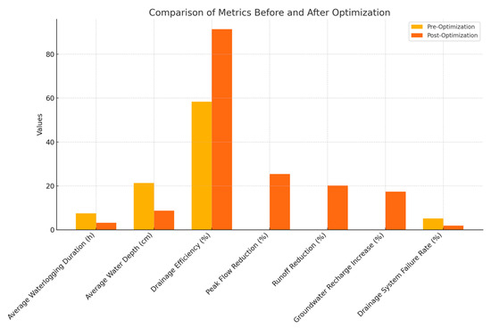 Implementing the proposed drainage network optimization and low-impact development (LID) measures entails significant upfront investment. For instance, constructing rainwater storage ponds, permeable pavements, and rain gardens involves material, labor, and maintenance costs. However, the long-term benefits far outweigh these initial expenditures. By reducing waterlogging events, the study predicts a 63.88% reduction in drainage system failure rates, which translates into decreased economic losses caused by property damage, traffic disruptions, and lost productivity. Additionally, improved groundwater recharge and rainwater utilization reduce the demand for municipal water supplies, offering further cost savings over time.