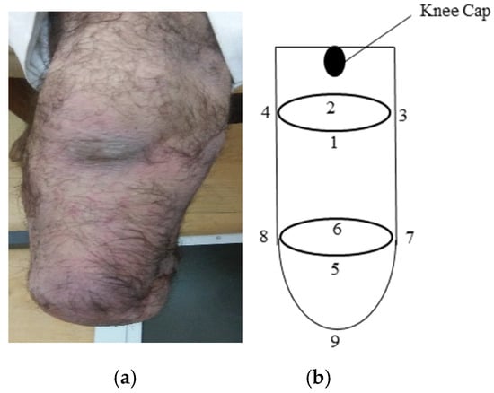 - Jebur, N.A.; Abdulla, F.A.; Hussein, A.F. Experimental and numerical analysis of below knee prosthetic socket. Comput. Commun. 2018, 9, 1–8. [Google Scholar]